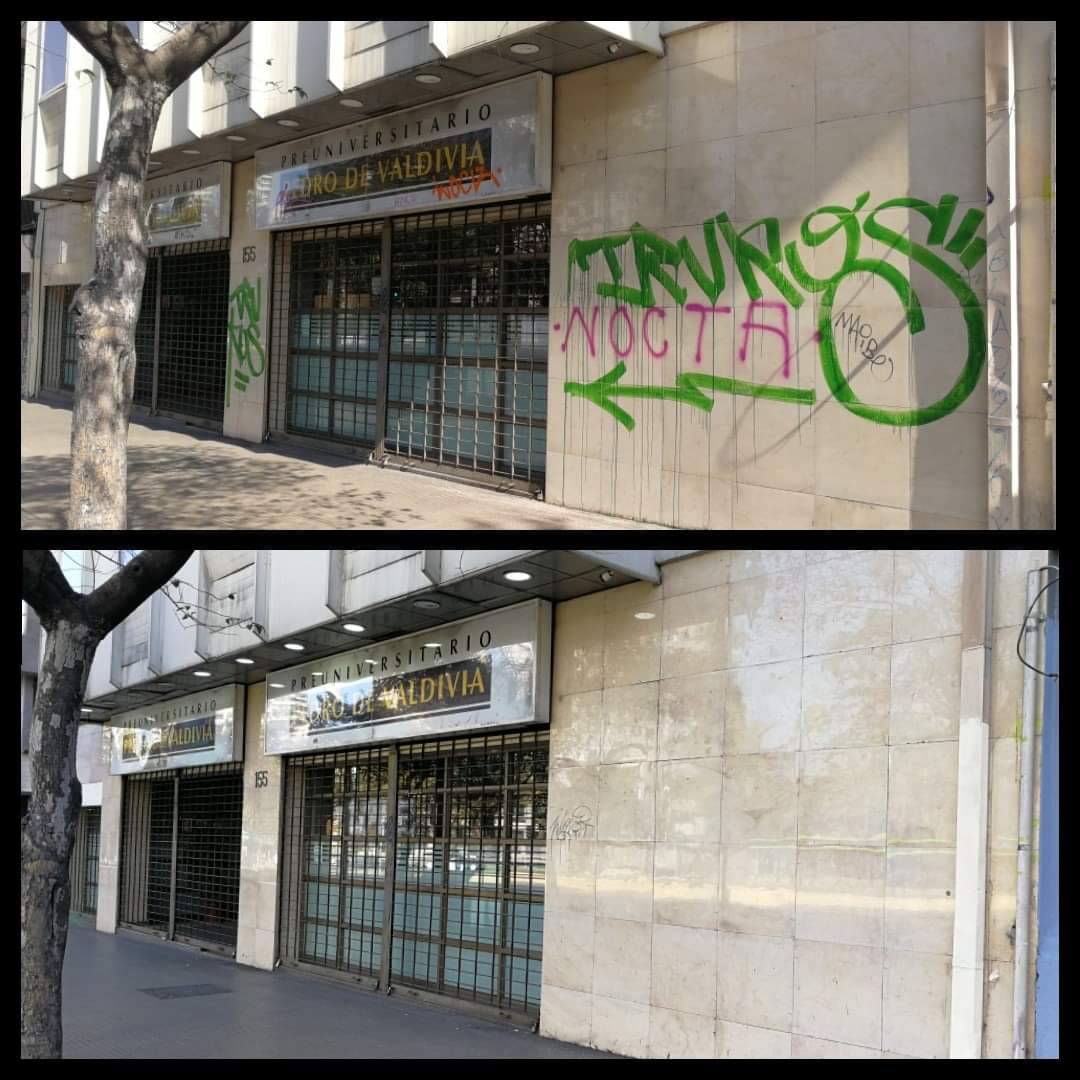 Teníamos una estadística de Alameda, cuando pasamos de 2.000 rayados a 600 en seis meses y a 200 en ocho meses. Es una batalla fuerte en donde yo limpio, él raya, yo limpio, él raya, pero meses después se aburre, se desmotiva y no vuelve. El mantenimiento es efectivo, lo viví. Nos dimos cuenta que a los seis o siete meses se podían ver números azules.