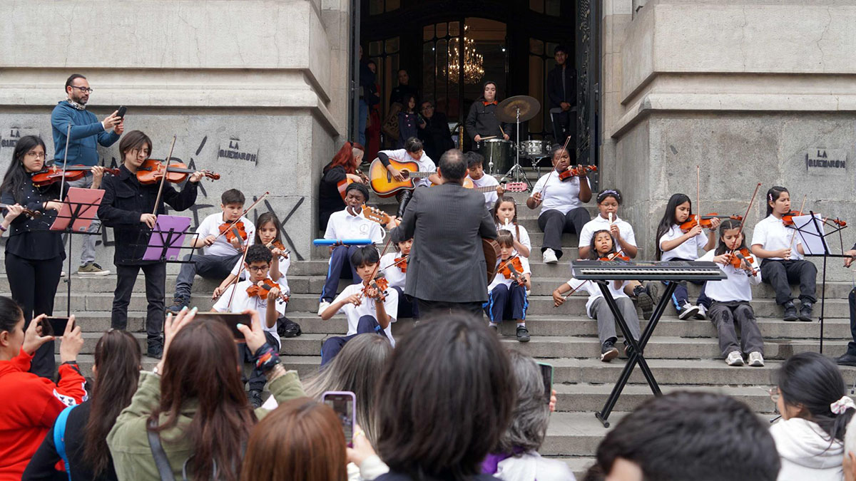 Durante la jornada, cientos de personas recorrieron los distintos espacios del principal centro bibliográfico del país y participaron de diversas actividades culturales. Entre ellas, destacaron dos visitas guiadas a cargo del equipo de Educación y Mediación Patrimonial, que permitieron conocer la historia, la arquitectura y las colecciones de la Biblioteca. Además, en las escalinatas del edificio se presentó el Coro Ciudadanos del Mundo, integrado por estudiantes y egresados de la Universidad Metropolitana de Ciencias de la Educación, junto a una presentación especial de la Orquesta del Colegio Pedro Aguirre Cerda.