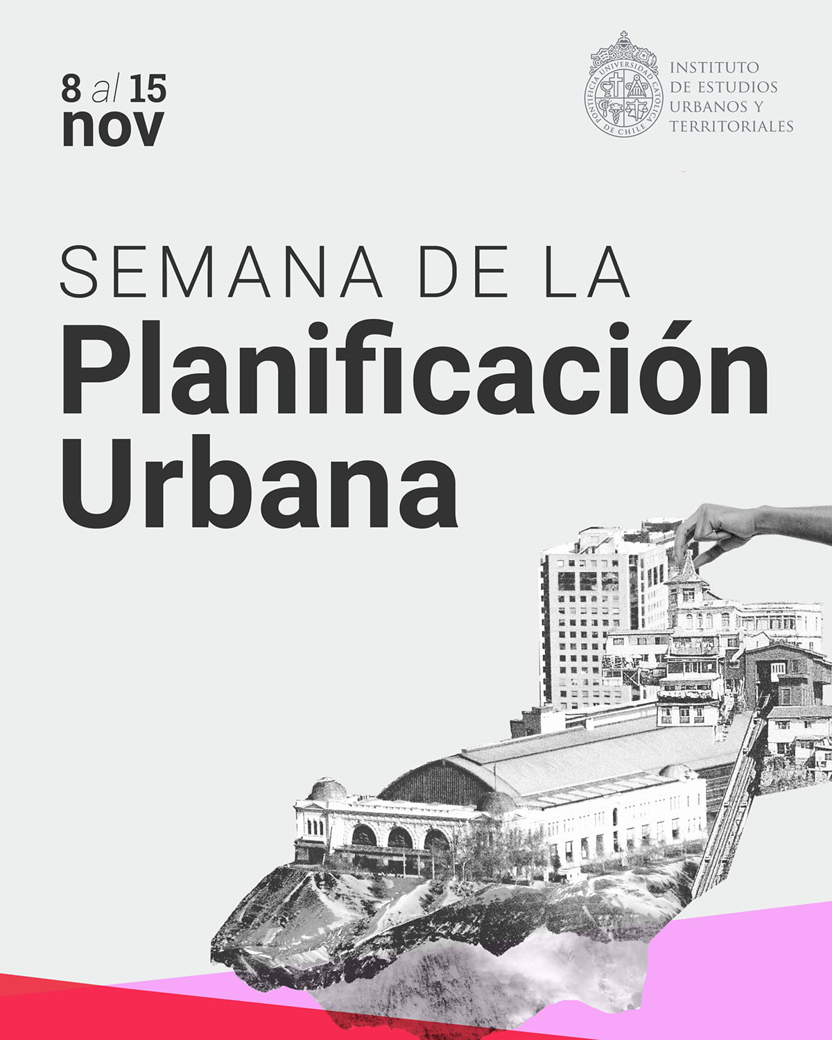 Entre el 8 y el 15 de noviembre, el Instituto de Estudios Urbanos y Territoriales junto a la Facultad de Arquitectura, Diseño y Estudios Urbanos UC, celebran la Semana de la Planificación Urbana 2025, en el marco del Día Mundial del Urbanismo. Una oportunidad para reflexionar sobre el presente y futuro de nuestras ciudades y territorios.